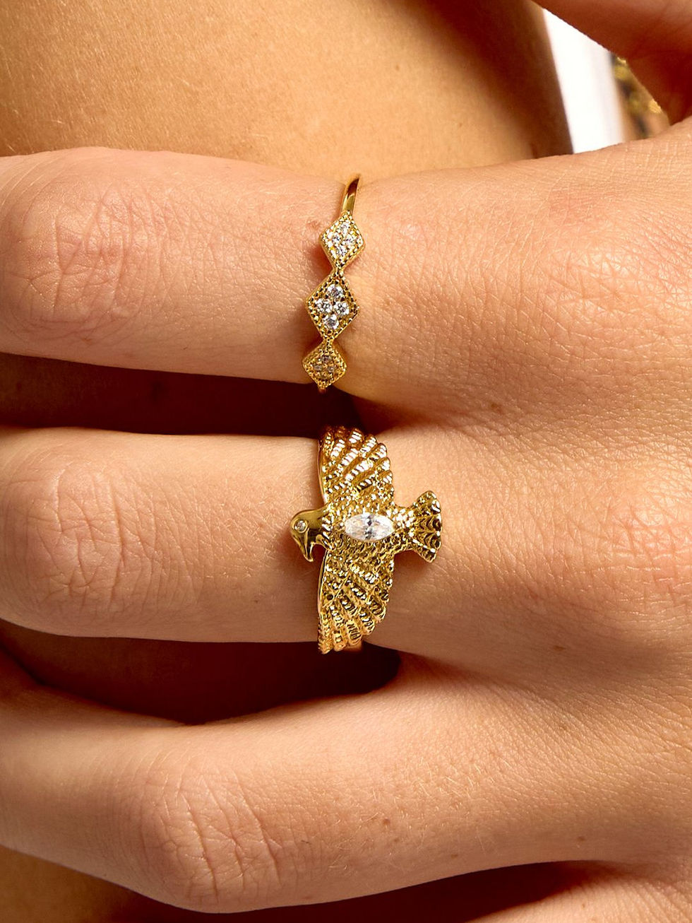 La bague AIGLE de MYA BAY, dorée à l’or fin recyclé 24 carats, c’est l’appel de la liberté… version bijou.